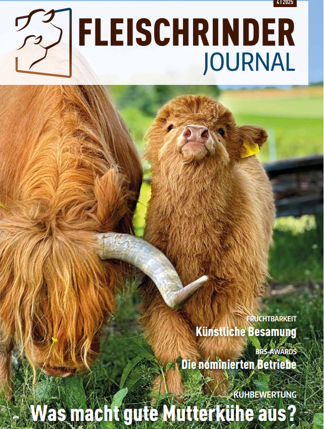 Seit Anfang 2025 erscheint die Fachzeitschrift Fleischrinder Journal unter der kompletten Regie des BRS. Mit unserem starken Partner, dem Deutschen Landwirtschaftsverlag in München (DLV) an unserer Seite, konnten wir uns gut in die neuen Aufgaben einfinden. Die Ziele und Gründe der Eigenregie konnten voll erreicht werden. Diese lagen vor allem in der stabilen Gestaltung der Bezugs- und Anzeigengenpreise, Mitspracherecht im Inhalt und eine attraktivere Gestaltung des Heftes.