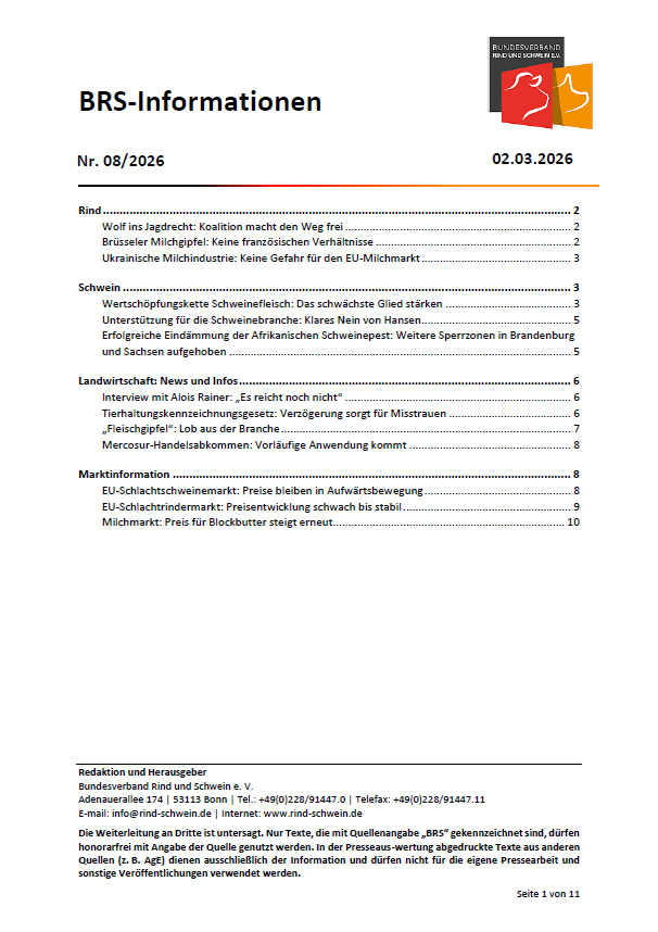 | 27.06.2025 | BRS begrüßt Verschiebung, fordert aber weitere Verbesserungen beim Tierhaltungskennzeichnungsgesetz |