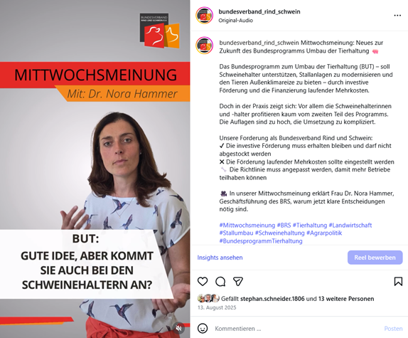| 11.12.2025 | Ernährungssicherheit ist Grundversorgung – BRS startet Social-Media-Kampagne zur Zukunft der deutschen Tierhaltung |